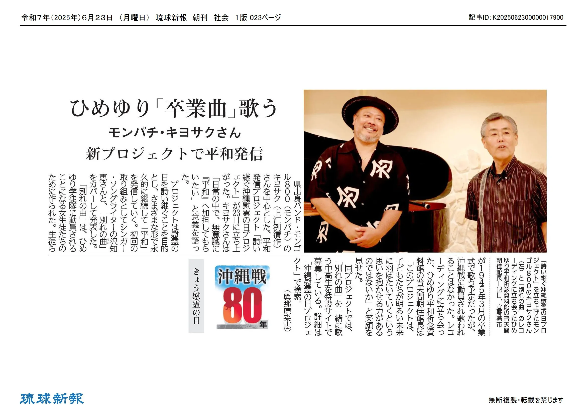 このたび「詩い継ぐ沖縄慰霊の日プロジェクト」に賛同してくださり、無償でのご提供です。感謝申し上げます。